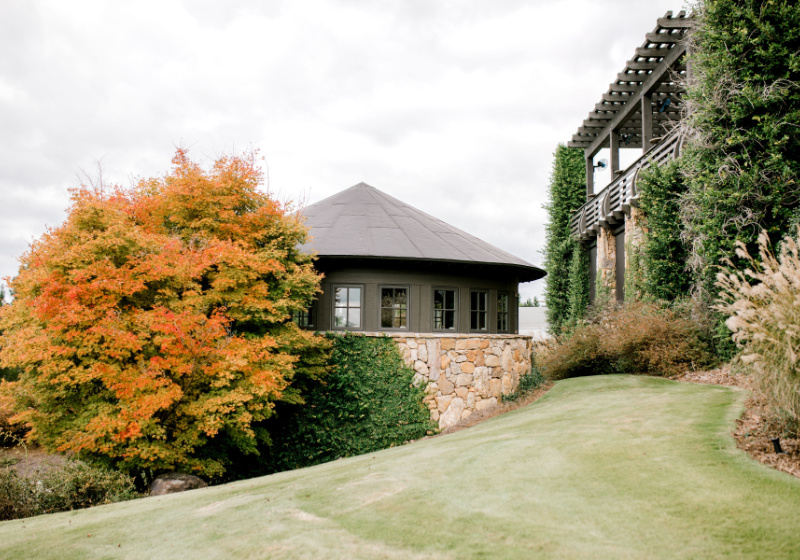 The covered patio dining area is surrounded by stone and large shutters that open to the pastoral view. The upstairs loft dining area overlooks the main dining room and opens to a large balcony with ivy-covered chimneys. For special occasions, guests are invited to reserve the WellHouse—a private 12-seat dining room connected to the restaurant by an underground wine cellar.