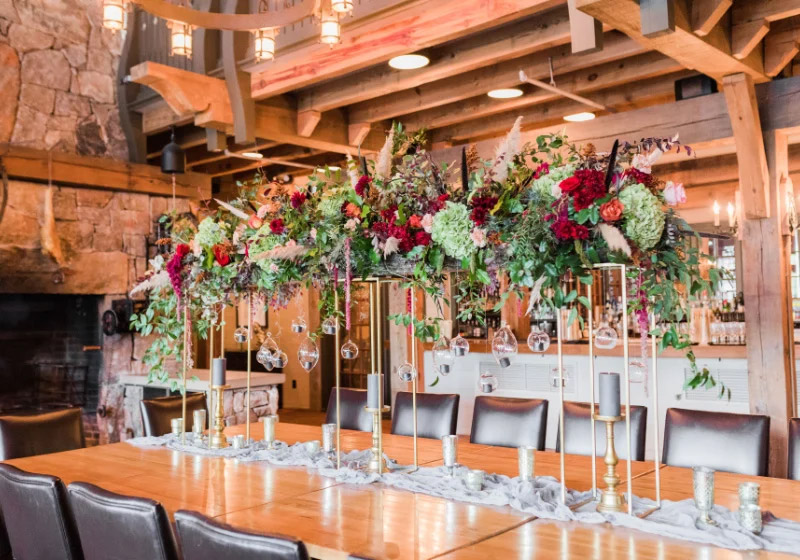 The Main Dining Room is the perfect place to host a wedding reception or other important celebration. Exposed stone & wooden beams, expansive windows, and open spaces give the Main Dining Room a rustic, casual feel that epitomizes SpringHouse’s sophisticated yet unpretentious style. Warmth and energy radiate from the open kitchen, cozy hearth, and roaring fireplaces, creating a relaxed and comfortable atmosphere. Our friendly and experienced staff raise the bar by providing exceptional service and attention to detail, making SpringHouse the premier dining destination for Lake Martin. Please contact the Catering Director to discuss capacities and food & beverage minimums. A venue fee applies.